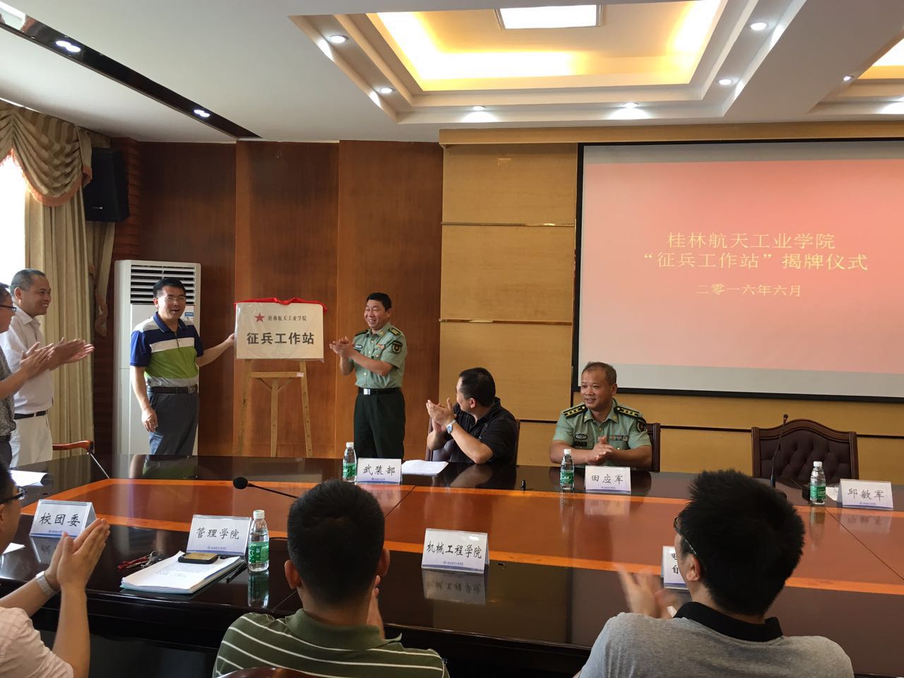 6月20日上午,桂林市警备区参谋长邱敏军、七星区人武部政委田应军、桂林市警备区参谋陆正杰等莅临伟德bv1946官网并出席伟德bv1946官网“征兵工作站”揭牌仪式。伟德bv1946官网副校长郝德温,以及学校征兵工作领导小组成员等参加。仪式由伟德bv1946官网武装部部长张云主持。