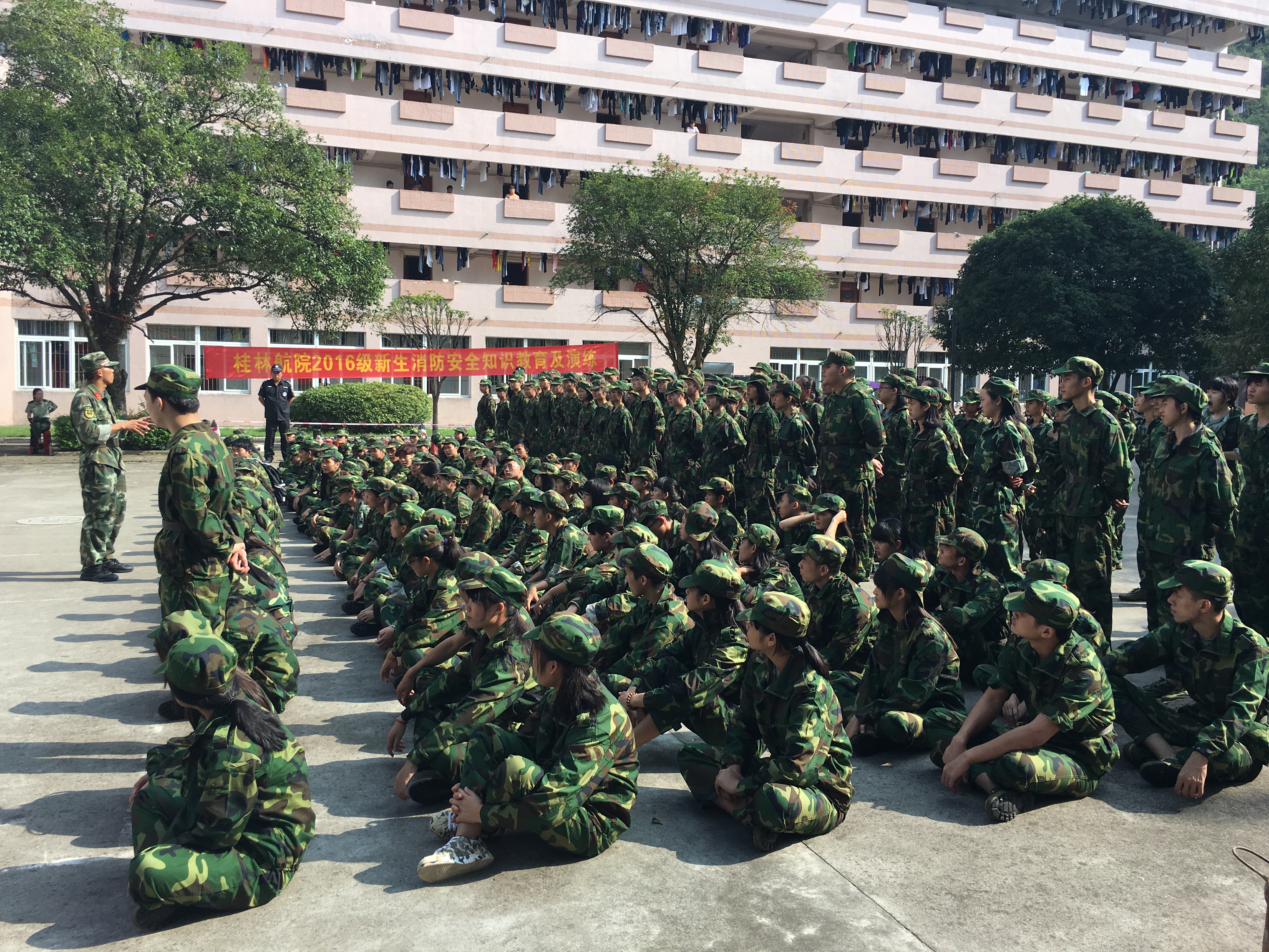 此次演练分别在北校区篮球场及9号公寓楼前羽毛球场,南校区绿化基地旁及塑胶篮球场内四个地点同时进行,由伟德bv1946官网邀请的七星区公安消防大队的教官给同学们讲解火灾的基本类型、扑灭方式以及消火栓和干粉灭火器的实际操作方法等消防知识,并由保卫处校卫队员配合进行消防器材的操作演示。