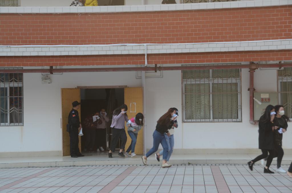 下午4:30演练准时开始,演练场景设计为天和苑4号学生公寓学生因使用大功率电器不慎引发火灾,保卫处在接到宿舍管理员报警后,立即启动应急逃生疏散预案,随着火警警报铃声响起,正在公寓内休息的学生用湿毛巾捂住口鼻,在各楼层疏散人员及辅导员老师的引导下,按照逃生路线有序地撤离起火公寓。200余名师生从出现火警到安全撤离,共历时5分钟,全程井然有序,没有出现任何互相挤压、踩踏情况,无一人受伤,达到了预期效果。