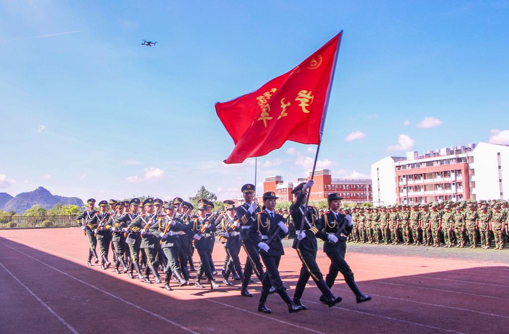 在旗手的护卫下,学生军训团团旗迎风飘扬,雄壮的国歌声响彻校园,伟德bv1946官网大学新生列队整齐、站姿如松,2017级新生军训会操典礼正式拉开帷幕。