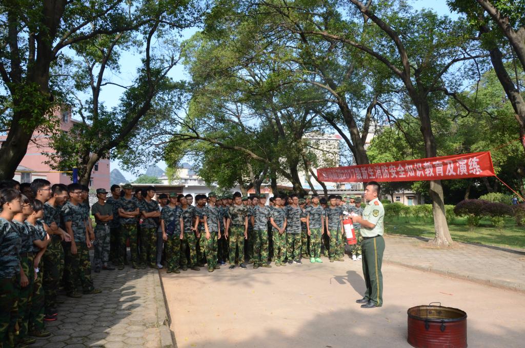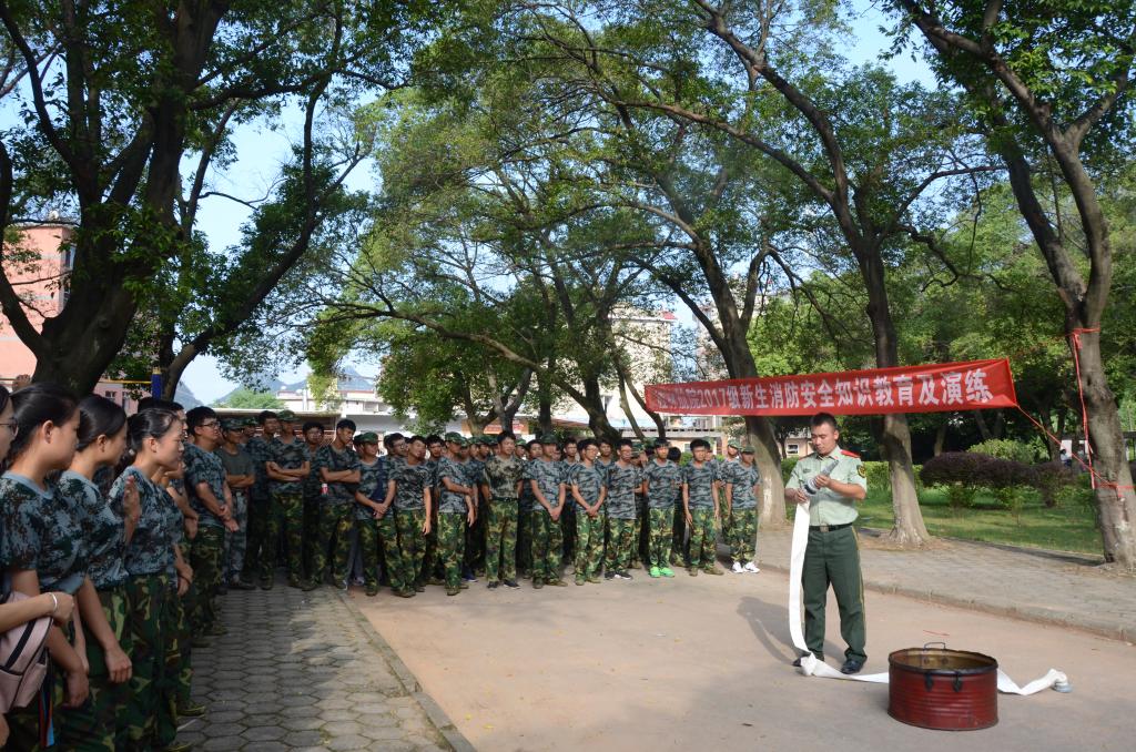 为增强新生的消防安全意识,使新生掌握火灾防范知识及逃生技能,提高应对突发性火灾事故的自救自护能力, 9月27日,伟德bv1946官网邀请桂林市七星区公安消防大队的教官,对伟德bv1946官网2017级新生进行消防安全知识教育及培训,4000余名新生参加了消防演练。