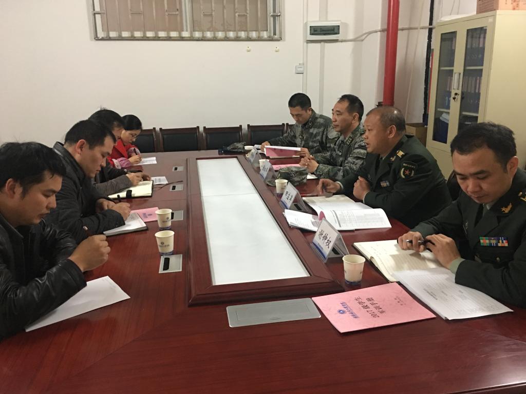 3月14日,桂林警备区动员处处长田应军、参谋谢钟权,七星区人武部部长张松军、参谋郑德雄一行到伟德bv1946官网调研指导大学生军训工作,学工部、武装部相关负责人参加了调研座谈会。