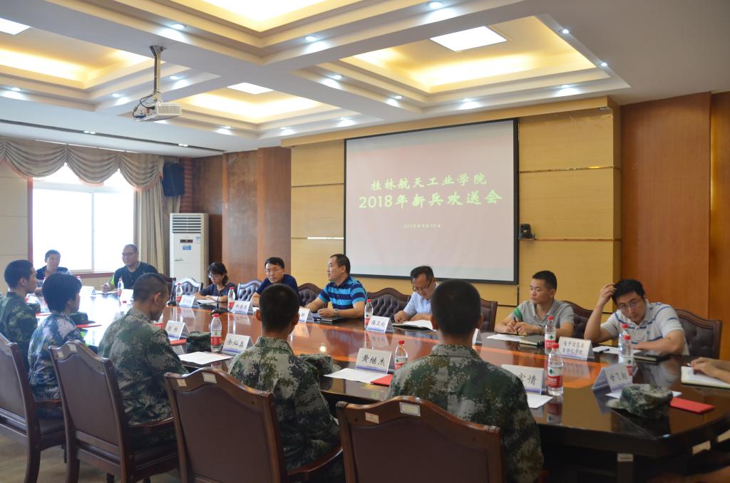 9月10日上午,伟德bv1946官网在南校区飞天楼117会议室为即将奔赴军营的19名新兵举行入伍欢送会。学校副校长郝德温出席会议,学工处、武装部主要负责人,入伍学生所在二级学院党总支副书记及部分新兵家长参加了欢送会。