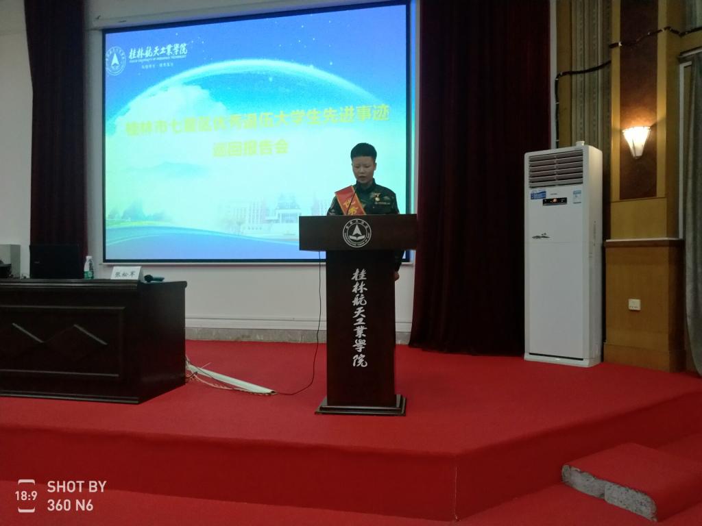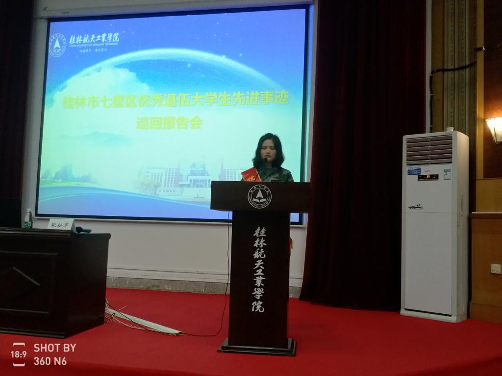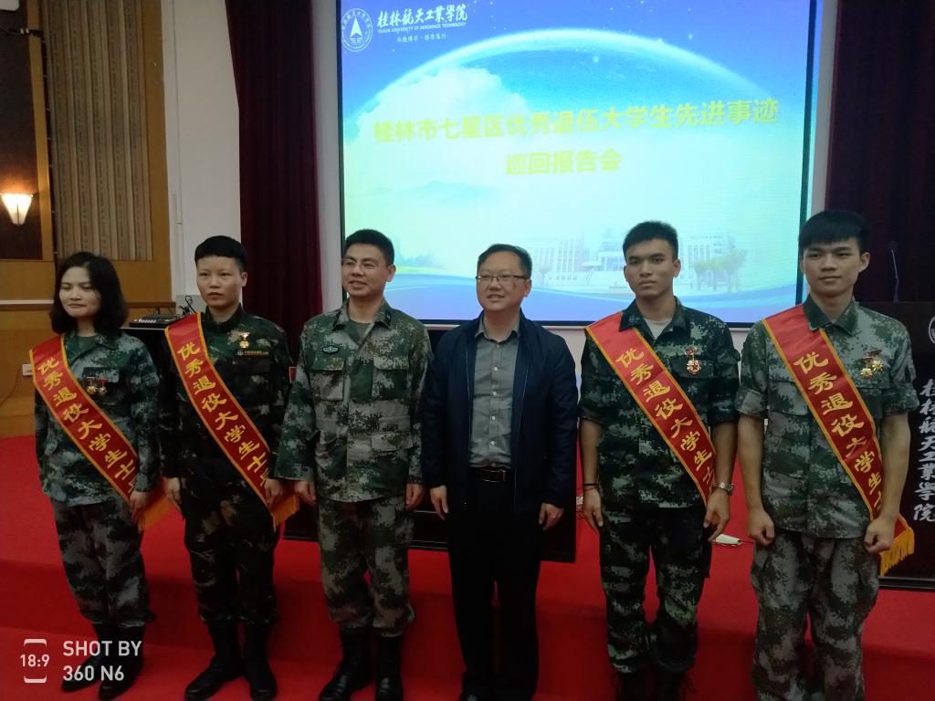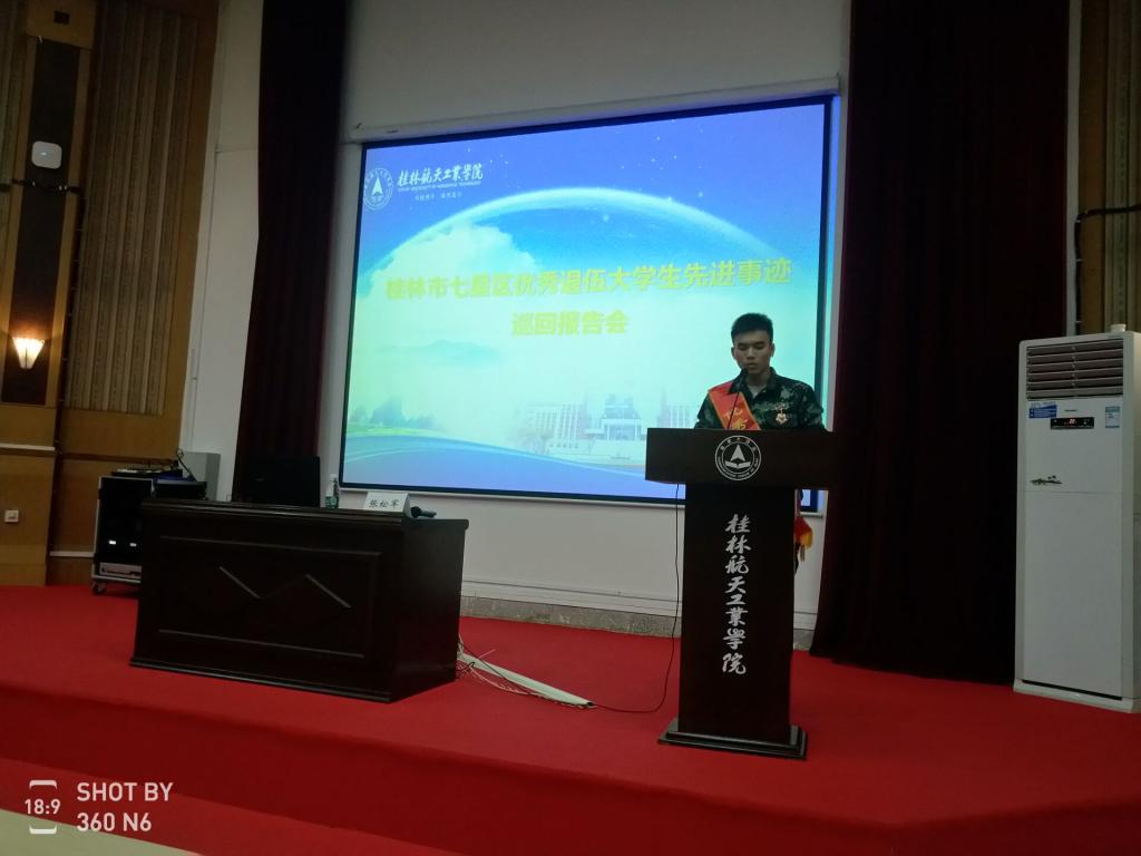 4月30日下午,桂林市七星区优秀退役大学生先进事迹巡回报告会在伟德bv1946官网2号教学楼108报告厅举行。伟德bv1946官网武装部负责人等三百余名师生到会场聆听了报告。