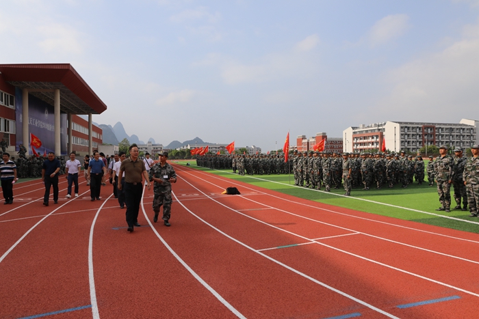 军训场上,参训学生口号响亮,斗志昂扬。校领导一行观摩了学生军事技能训练,详细了解军训工作开展情况,并与承训单位教官、参训学生进行交流。
