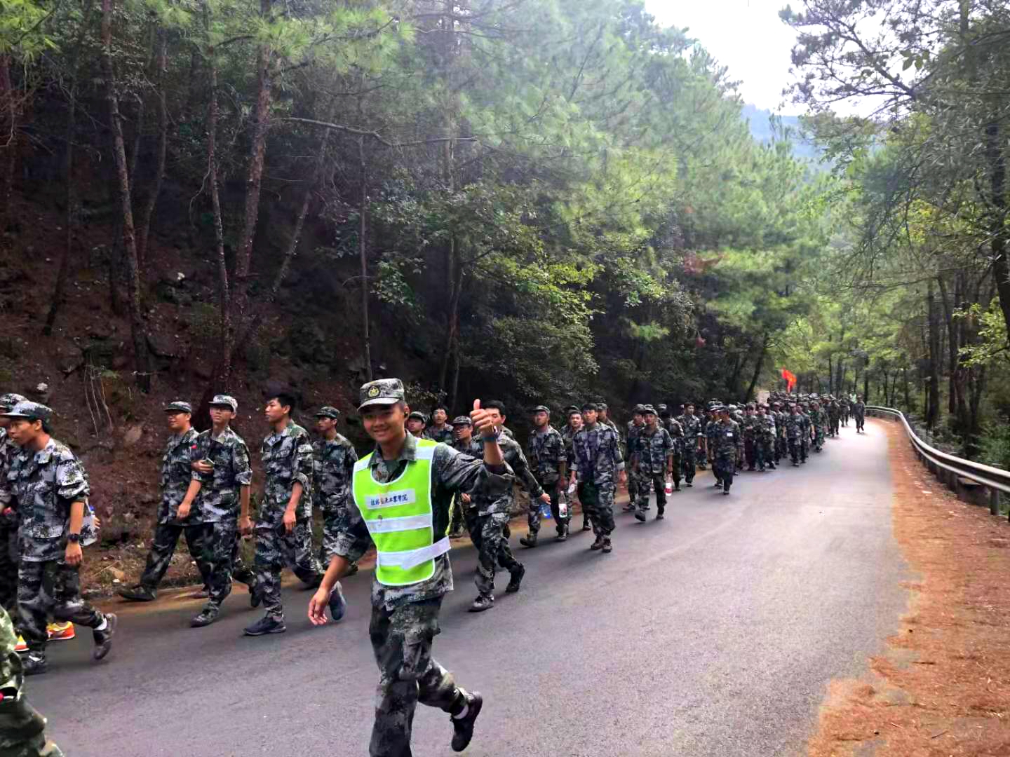 9月26日上午,2019级新生十公里行军拉练正式上演。行军拉练按照预先勘察好的行进路线,从学校南校区大门出发,往尧山路段行至5公里处,沿原路返回,全程约10公里。