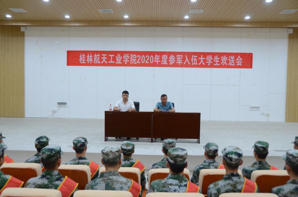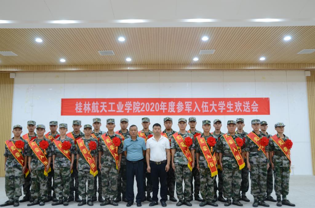9月9日上午,伟德bv1946官网武装部副部长张肖伟及相关人员前往桂林市中小学生示范性综合实践教育中心为即将奔赴军营的22名入伍大学生举行入伍欢送会。