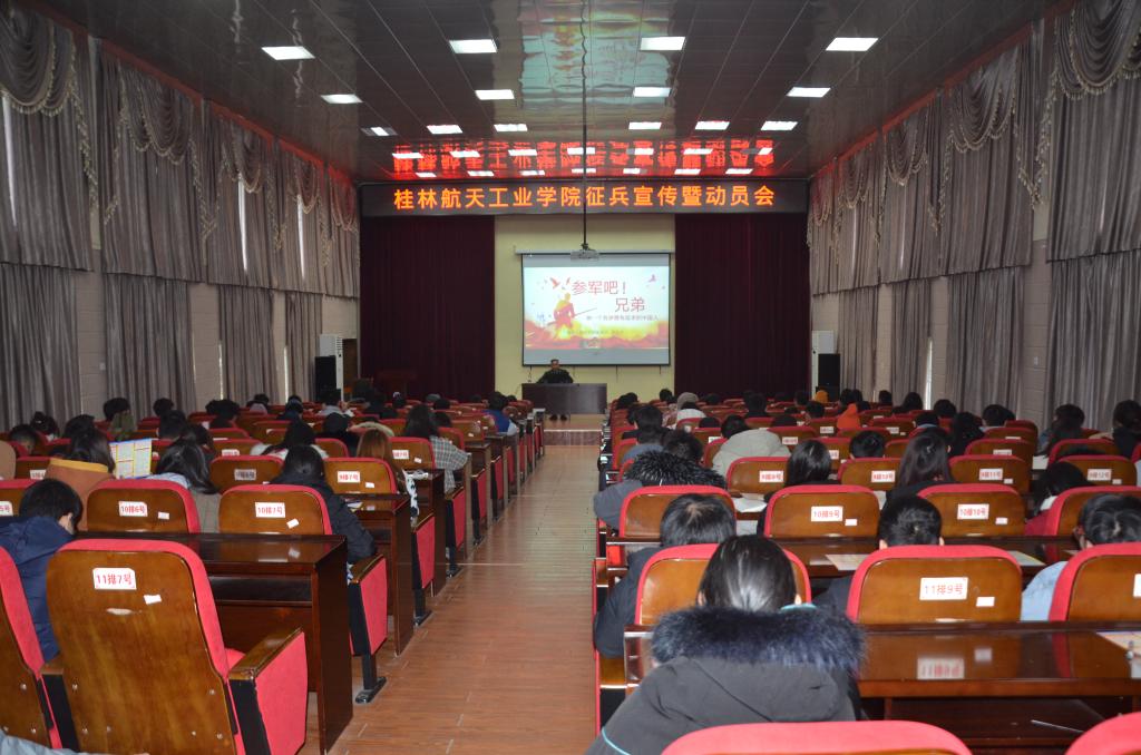 为进一步贯彻落实教育部办公厅《进一步做好高校学生参军入伍工作的通知》(教学厅[2015]3号)文件精神,扎实推进伟德bv1946官网大学生应征入伍工作,强化政策解读,为大学生尤其是毕业生报名参军、投身强军伟业创造良好条件。12月17日下午,伟德bv1946官网邀请桂林市七星区人民武装部梁友才中校等一行三人在伟德bv1946官网北校区电教馆召开2021年征兵宣讲暨征兵工作推进会。学校武装部负责人及学生代表200余人到场参加会议。会议由伟德bv1946官网武装部阳艳贵老师主持。