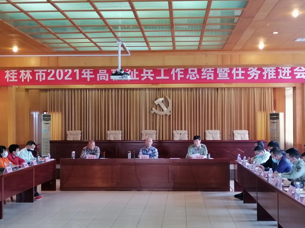 4月21日上午在桂林警备区组织召开桂林市2021年高校征兵工作总结暨下半年任务推进会,秀峰、七星、雁山、临桂、灵川县(区)人民政府征兵办公室, 桂林市各高校征兵工作站负责人参加会议。