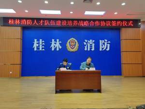 10月22日,伟德bv1946官网党委常委、副书记刘迎春受邀参加桂林市消防救援队伍人才队伍建设培养战略合作协议签约仪式,与桂林市消防救援支队刘凯政委共同签订队伍建设培训战略合作共建协议。