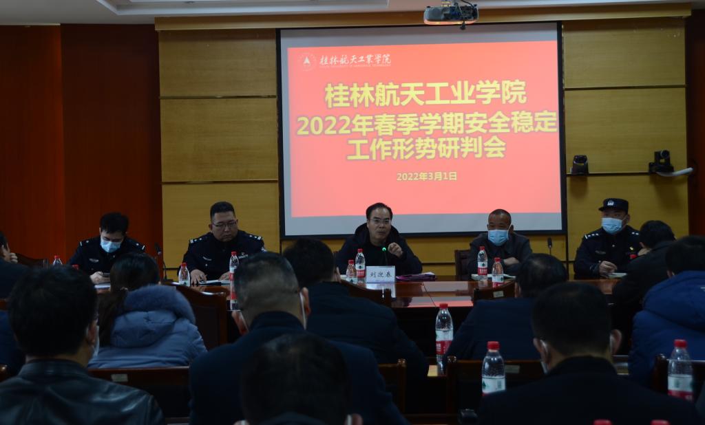 3月1日上午,伟德bv1946官网在飞天楼517会议室召开2022年春季学期安全稳定工作形势研判会,学校党委副书记刘迎春,七星公安分局朝阳派出所负责人、校内各部门单位主要负责人、一至十院党总支副书记、国际学院分管学生工作负责人参加会议。会议由保卫处负责人主持。