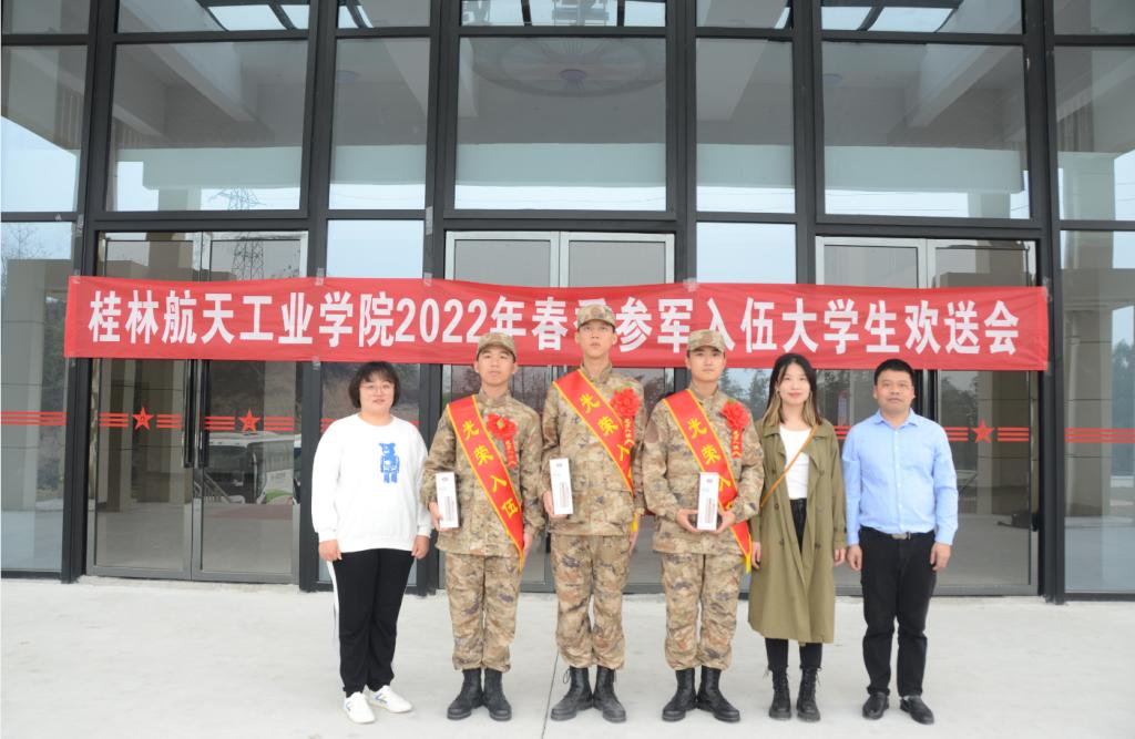 3月16日,伟德bv1946官网征兵工作站相关人员及入伍学生辅导员代表分别前往桂林市民兵军事训练基地、桂林警备区为即将奔赴军营的4名入伍大学生举行入伍欢送会。
