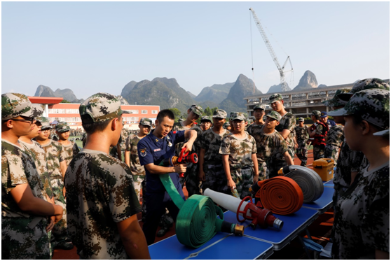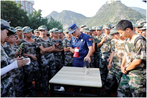 消防安全知识讲座授课后,在桂林消防救援支队、七星消防救援大队、灵川消防救援大队的精心组织下,全体新生依次到互动体验、展示区进行消防安全知识科普体验学习。