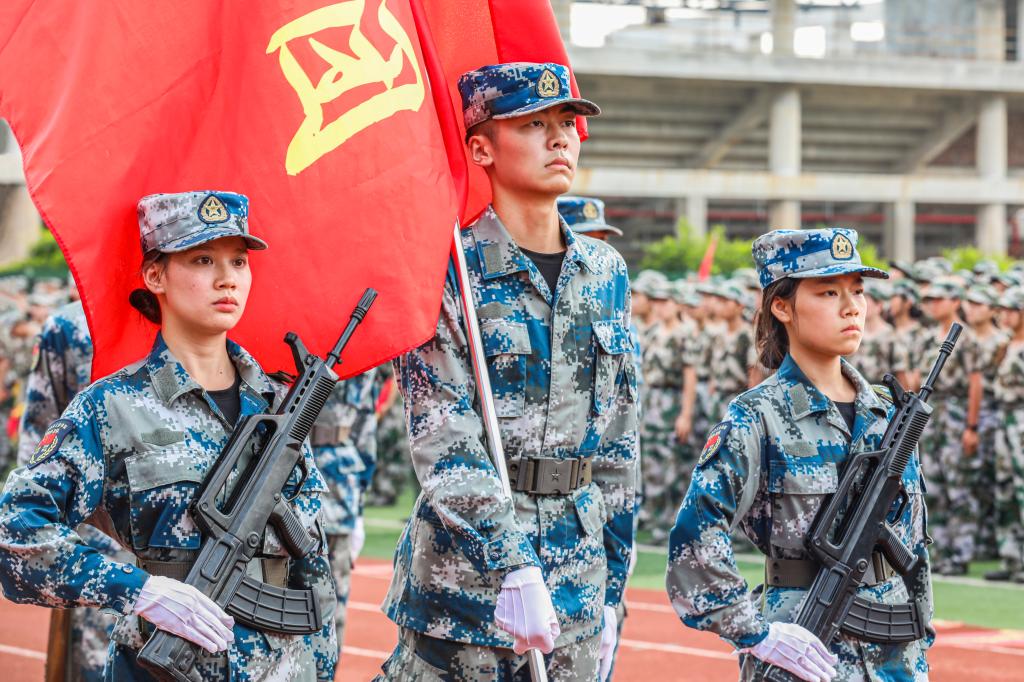 9月28日下午,伟德bv1946官网2023级新生军训会操典礼在南校区田径运动场隆重举行。学校校长吴尽昭、党委副书记吴江萍、军训总教官李玉立、宣传部、学工部(处)、教务处、武装部、后勤管理处、校团委负责人及一至十一院分管学生工作负责人出席了军训会操典礼。典礼由武装部负责人主持。