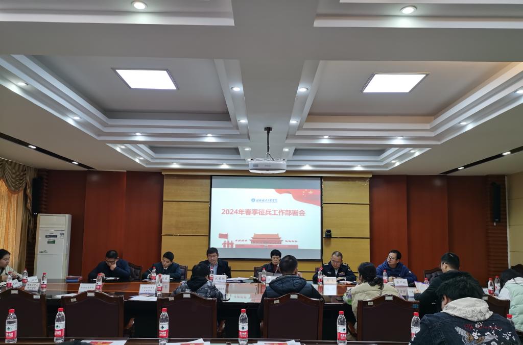 12月8日上午,学校武装部在飞天楼517会议室召开2024年春季征兵工作部署会。学校党委副书记吴江萍、七星区武装部部长周亮、学工部、武装部负责人及一至十一院分管学生工作负责人、毕业班辅导员参加会议,会议由学校武装部部长史吉锋主持。