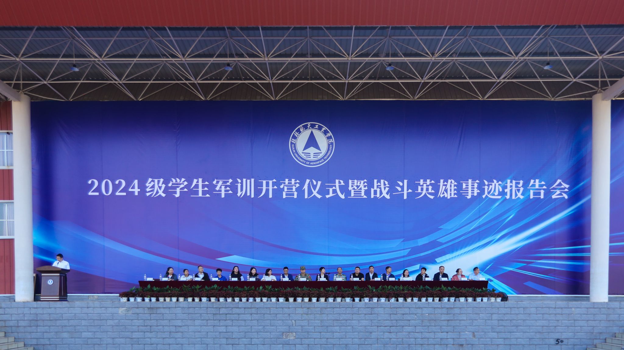在开营仪式上,吴江萍副书记向2024级学生军训团授军训团团旗并作动员讲话。她指出,军训作为国防教育第一课,是新时代青年必须经历的精神洗礼,是培养同学们航天品质的重要课程。学校坚持“塑形”与“塑魂”相结合,注重融入爱党、爱国、爱军教育内容,训家国情怀、训战斗精神、训责任担当,充分发挥学生军训国防教育功能。吴江萍副书记对全体参训同学提出三点要求:一要端正训练态度,积极参加训练;二要遵守训练纪律,听从教官指挥;三要秉承航天精神,展现桂航风采,圆满完成此次军事训练任务。
